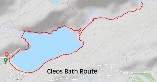 This 7.0 mile roundtrip hike takes you to swimable pools in the canyon above Pinecrest lake and swimming in the lake on the way there and back. This loop takes the easterly side on the way out and the westerly/dam route on the return route. To shorten it, take the easterly /southerly route in both directions. 735 feet of vertical. Do no attempt to climb the steep rocks from the base of the falls up. Instead, take the trail that turns to the right near the base of the falls.