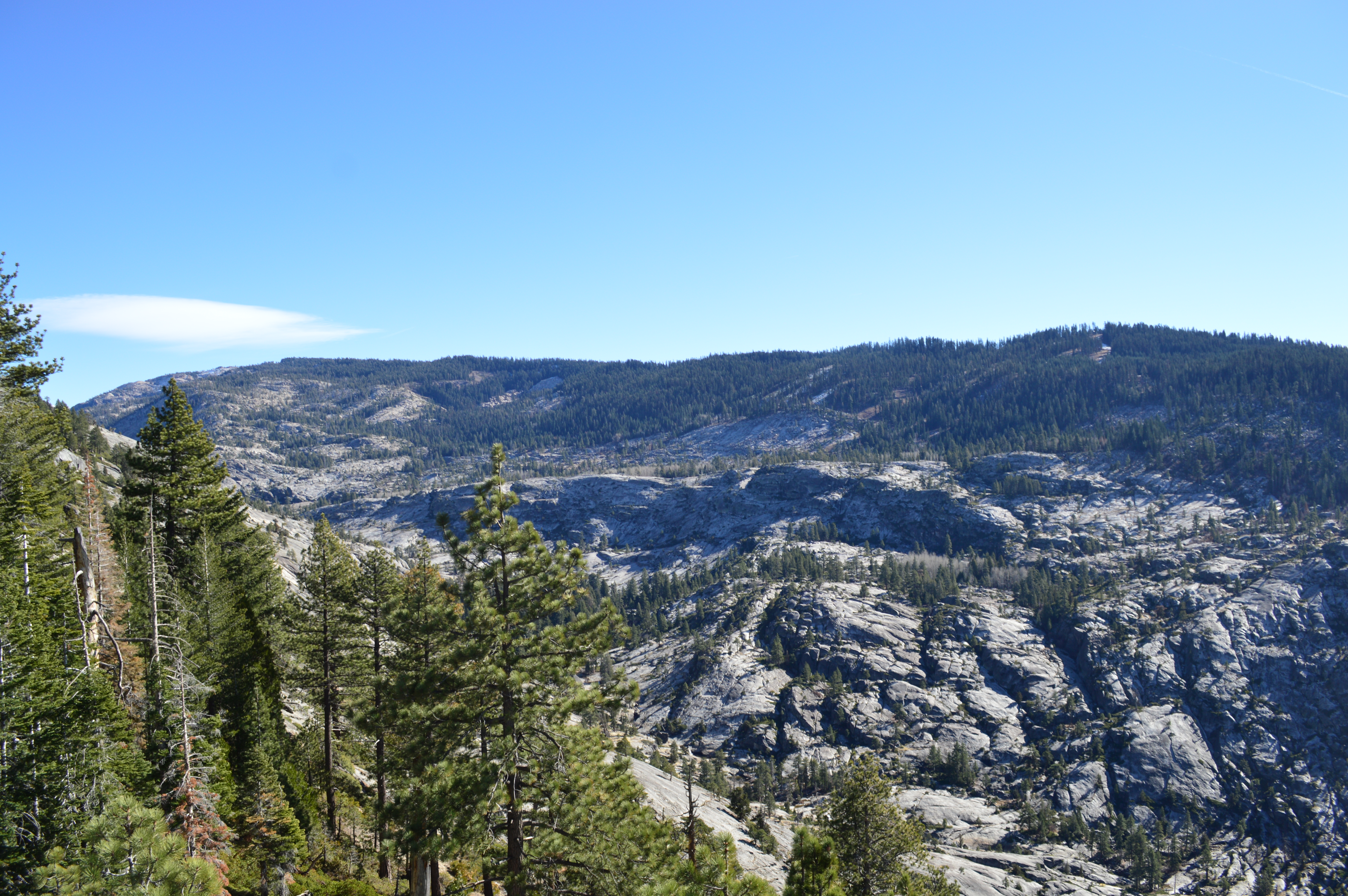 It offers several rewarding views that are a few steps away from the trail that look down into the steep canyon behind Pinecrest and views to the North and East once you reach the peak location.  If you are looking for a high Sierra wilderness experience with a walk from Pinecrest, this will take you up into the granite of the high country.